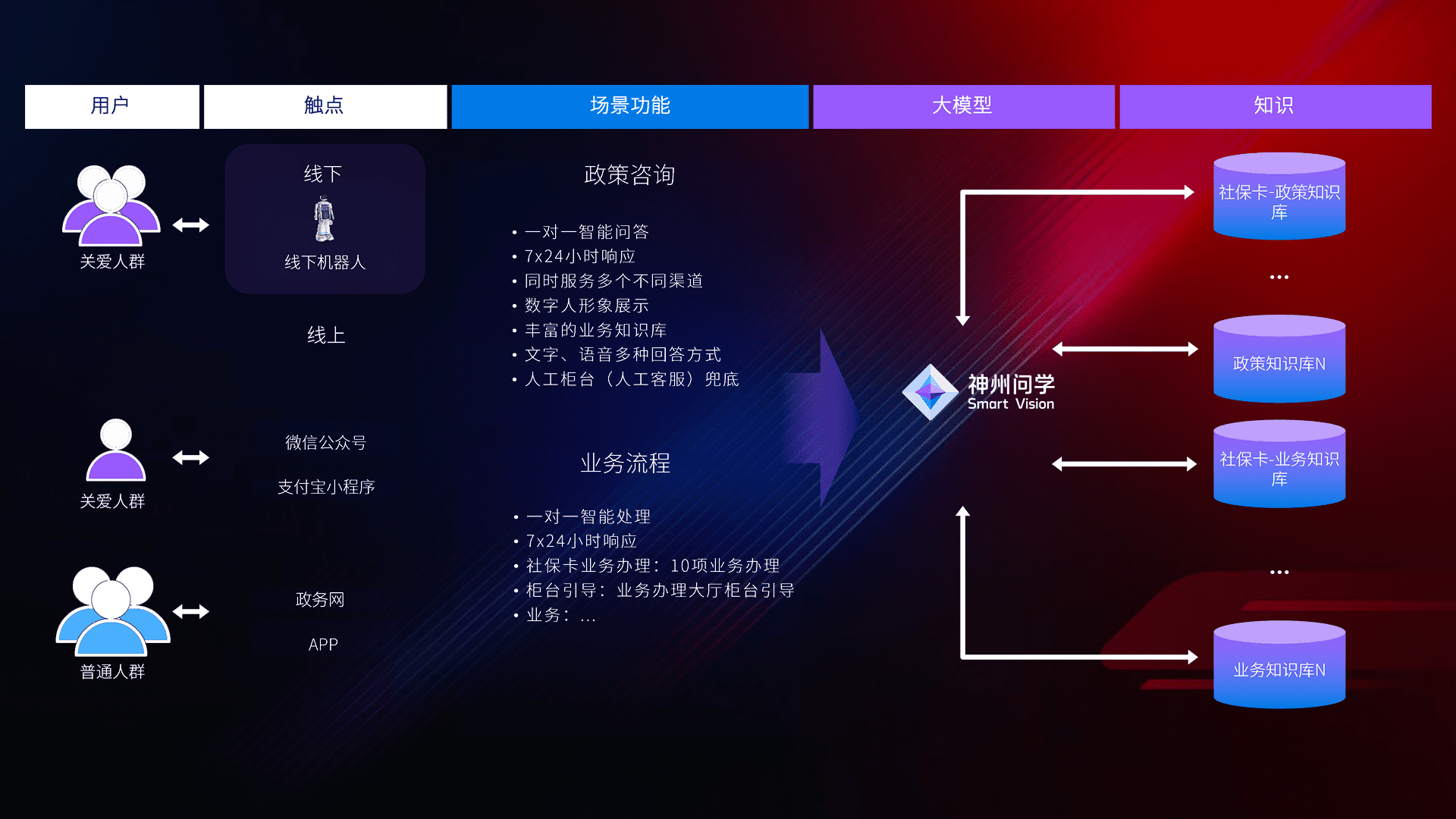 • 线上线下全覆盖:线上提供微信公众号、、、、支付宝小程序、、政务网、、app多种渠道,,与线下机器人形成完整服务体系。。。。